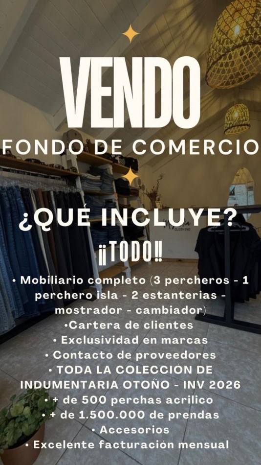 Se vende fondo de comercio de ropa femenina !!! Exclusividad en marcas como KOXIS -PEUQUE -ECCOMI CUA -SALTAN PEPA - BIAMA y muchas mas .