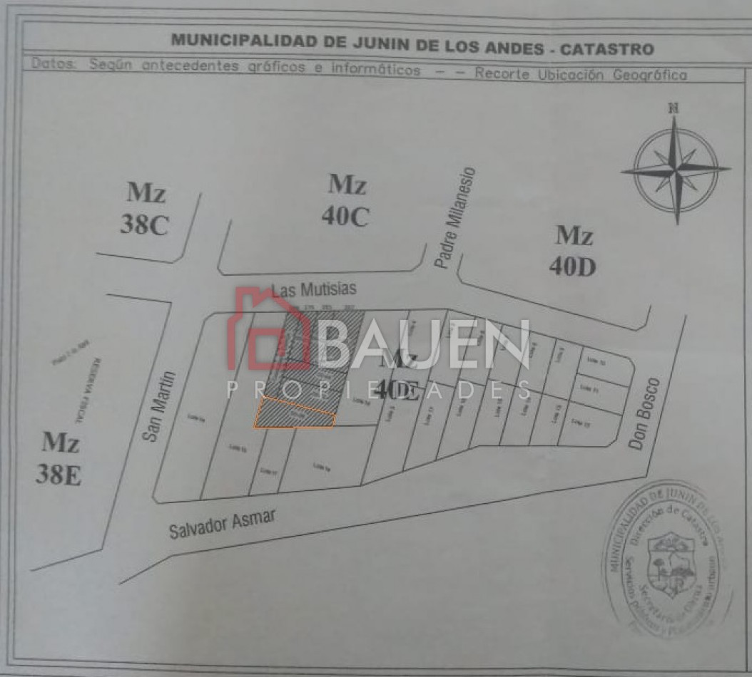 Posee 433 m2, plano, en el casco urbano y muy próximo al centro de Junín de los Andes.